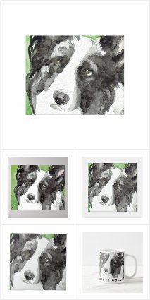 Some of my watercolor dog portraits are available on poster prints and other products from zazzle: